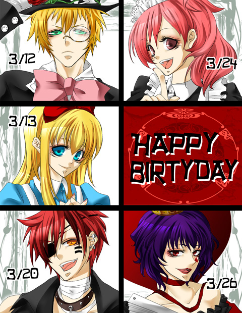 ボイスサイトさんのキャスト陣のハピバイラストなんですが3月多くて普通に描いてたらごっちゃりすると思って簡単なレイアウトに;;